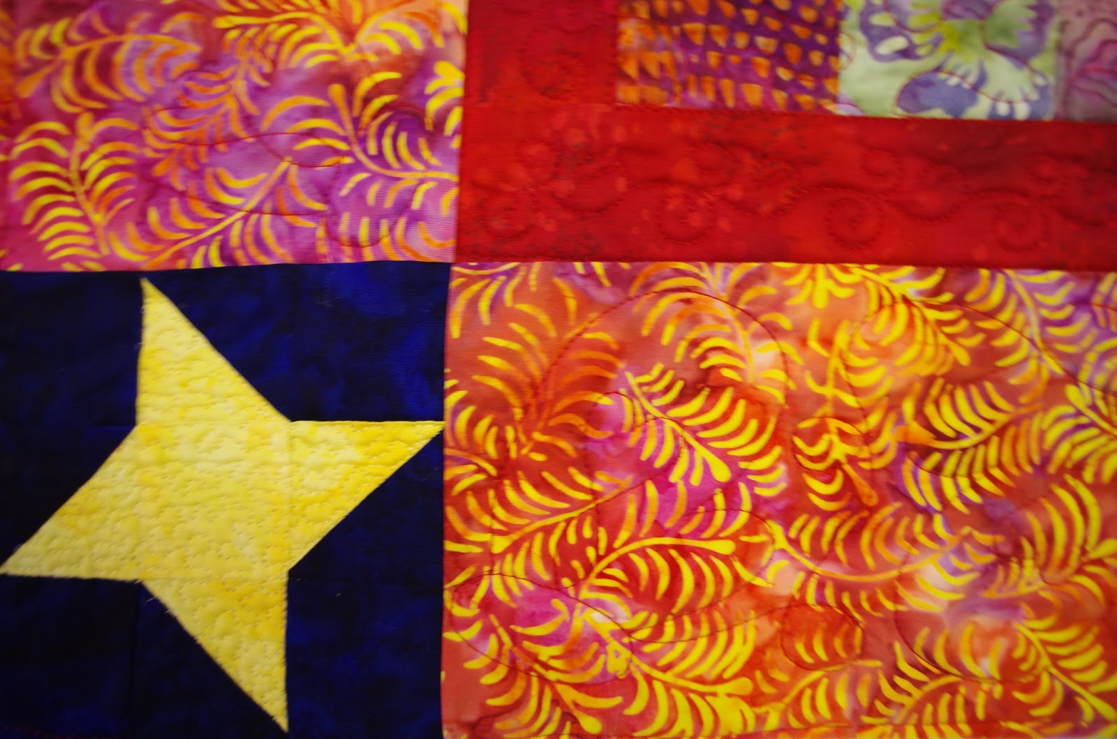 Little quilts can be so much fun! This little quilt is 37 x 37 inches and is quilted in the pattern called "Wisteria". Sally made this quilt for her daughter with the colors from her daughters wedding. You will notice the blocks are randomly pieced together using all her favorite colors. It is hard to see the quilting on the back of this quilt in the pictures with all the lines in the fabric. What a nice little quilt.